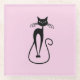 Whimsical Skinny Black Cat Pink Glass Coaster