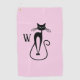 Whimsical Skinny Black Cat Pink Initial Golf Towel