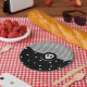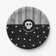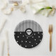 Whimsical Skull Black & White Polka Dots & Stripes Paper Plate