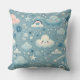 Whimsical Sky Pattern with Clouds, Stars - Blue Cushion