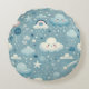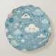 Whimsical Sky Pattern with Clouds, Stars - Blue Round Cushion