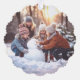 Christmas ornament card featuring a white, whimsical, folk art style snowflake inside a dot border and your custom photo. Customisable text "Wishing you a very merry Christmas". White text on a pine green background.