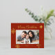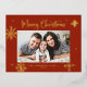 Whimsical Snowflakes Red Merry Christmas Photo Foil Holiday Postcard
