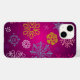 A stunning iPhone case with a beautiful combination of whimsical snowflakes on a bright pink purple background.
