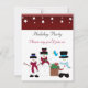 A fun holiday party invitation featuring three cute snowmen with different looks. A border of deep red with little white holiday stars. Customise with all of your party information as desired.