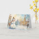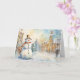 This whimsical illustration of snowman in a snowy village is perfect for your personal or business holiday cards. The text on the inside can be changed. AI assisted graphic purchased with commercial use. Artwork: FreyasDigitalCrafts and CraftersOasis