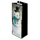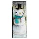 Wine gift bag with a cute drawing featuring a snowman wearing a cool top hat and scarf. The background has a line of whimsical snow-covered pine trees.