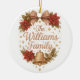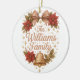 Add sparkle and cheer to your holiday season with this whimsical family Christmas ornament. Designed with glittering script lettering, a glamourous bow, festive poinsettias, holly leaves, and a shimmering golden bell, this ornament is both elegant and playful.