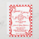 Celebrate the arrival of a little one with this playful and deliciously themed baby shower invitation! The design features a red-and-white checkered border reminiscent of a classic pizzeria, with charming illustrations including a pizza slice, baby bottle, rattle, and a sprig of herbs. The “Special Delivery!” headline adds a fun twist, blending food and baby themes in a warm, family-friendly style.