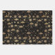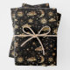 Whimsical Star Moon Planets Gold On Black Wrapping Paper Sheets