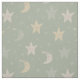 Muted tones on grey green background. Whimsical stars and moons pattern perfect for nursery