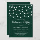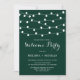 Elegant and whimsical welcome party invitation featuring white hanging fairy lights on a green background. This invitation is perfect for nautical-themed and outdoor events.