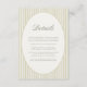 Keep your guests informed in style with this Whimsical Stripe Green Wedding Detail Card. Designed to complement your playful-yet-polished wedding suite, this card features soft hand-drawn green stripes and a clean, modern layout for all your extra details—accommodations, transportation, dress code, or wedding weekend events.