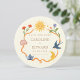 The round shape and watercolor illustration create a unique artistic feel, setting the tone for a joyful celebration.