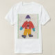 Step into a world of vibrant creativity with this one-of-a-kind t-shirt featuring an original artwork by a talented young artist. The design showcases a playful scene of a man dressed in a purple woollen cap, red sweater, turquoise gloves, yellow pants, and floral shoes, all set against a cheerful blue background. Every detail in this unique image has been hand-crafted with care, making this t-shirt not just a piece of clothing, but a wearable piece of art. Celebrate creativity and stand out with this whimsical and colourful design, perfect for anyone who loves originality and bold fashion statements