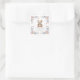 Celebrate the upcoming arrival of your little one with this adorable teddy bear baby shower sticker. Featuring a sweet, vintage-style teddy bear surrounded by a delicate watercolor floral border in soft pastel pink, blue, and yellow hues. The charming phrase 'We can bearly wait!' is elegantly scripted above the personalized text for the baby shower and parents-to-be. This sticker is perfect for decorating invitations, party favors, thank you cards, or as a special embellishment for your baby shower decorations. Let this heartwarming design add a touch of gentle charm to your special celebration, creating cherished memories for years to come.