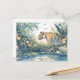 This charming postcard features a majestic tiger wandering along a peaceful riverbank. Rendered in a soft, ethereal watercolor style, the scene is filled with vibrant orange and yellow blossoms, lush teal greenery, and fluttering blue butterflies. The crystalline blue water in the foreground reflects the soft light of a clean white background, creating a serene and airy atmosphere. Every brushstroke adds to the dreamlike quality of this natural sanctuary. This postcard is perfect for sending a thoughtful note, a nature-inspired greeting, or as a beautiful decorative keepsake for wildlife enthusiasts.
