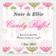 Whimsical Tree Candy Bar Sticker. Great for Candy buffets or cupcake tables at weddings, birthday parties, Baby showers, Communion, Confirmations and lots more! Design features background with pink and green dotty trees.