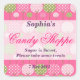Whimsical Tree Candy Shoppe Sticker.Great for birthday parties, Weddings, baby showers or other events with Candy buffets! Either stick to jars or paper bags. to make them extra special, stick to some precut cardstock and add a ribbon. Then simply hang around the jar! Or stick a coffee stirrer to the back of pre-cut cardstock, add the sticker and use as a cupcake topper! Design features a whimsical tree pattern with pink and green trees with polka dots against a pink background with the words Candy Shoppe in swirly font. Feel free to change text and text colour how you like!
