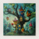Whimsical Tree Houses in Large Tree jigsaw puzzle. © Jigsaw Wonderland at Zazzle. A group of whimsical wee tree houses all perched on or hang from the branches and trunk of one large tree.