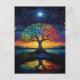 Whimsical Tree of Life Abstract Blue Rainbow Postcard