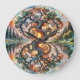 A clock featuring a pretty, vibrant tree design, with colourful branches and leaves in it's own reflection, making it a whimsical timepiece. (generated content)
