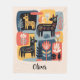 Whimsical Tribal Animals Floral Folk Art Fleece Blanket
