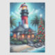 Whimsical Tropical Christmas Lighthouse Teal Red