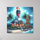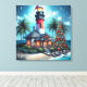 Whimsical Tropical Christmas Lighthouse Teal Red Canvas Print