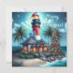 Whimsical Tropical Christmas Lighthouse Teal Red Holiday Card