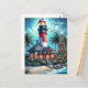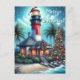 Whimsical Tropical Christmas Lighthouse Teal Red Holiday Postcard