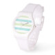 White with Beachy tropical shades of creamy lime, lovely limpet, and pastel marigold stripes. Personalised name. Simple, modern, trendy colours for 2025. Name enclosed with star icons, in a dark teal. Customise all colours in the design tool.