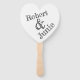 This charming fan makes a great party favour or wedding favour. Featuring a large contemporary font that says "Love & Marriage" on one side, and the bride and groom's names on the other. Outdoor weddings, or indoor--a charming modern accent for a special day. Colours: Black and White. Or you can customise and choose any background or font colour you prefer!