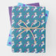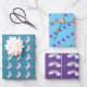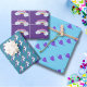Whimsical Unicorn Rainbow Heart Wrapping Paper. Set of 3 whimsical wrapping papers. Sheet 1 features a Unicorn on a dark teal background. Sheet 2 features dark purple hearts on a lighter teal background. Sheet 3 features colourful rainbows on a purple background. Each sheet provides a sprinkly of joy and magic. The wrapping paper can make your present stand out making it unique for your special little girl.
