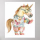 Whimsical unicorn reading book poster