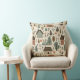 Cottage core throw pillows style village of cottages and trees, mushrooms, flowers in green, brown, and earthy tones.