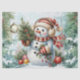 Whimsical Vintage Decoupage Christmas Snowman Tissue Paper