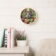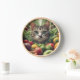 Whimsical Wall Clock with Cat and Fruit Design