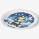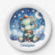 Whimsical watercolor baby dino hugging bear paper plate