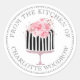 Pretty striped floral French inspired cake cake with "from the kitchen of" , baked goods round labels, with classic decorative open face typography. Just add your name. An eye catching style for your baked goods. You may use the simple design tool to change font style and colour of fonts.