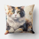 Whimsical Watercolor Calico Cat and Butterflies Cushion