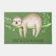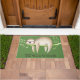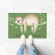 Whimsical watercolor doormat design features sleepy, smiling sloth on branch. Personalise with your welcome message or name