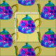 Cute whimsical illustration design of blue kitsch teapot. Colourful and cute tea lovers design for people who love a good cup of tea.