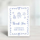 Cute folded thank you card for your baby boy shower featuring a french blue wavy frame adorned with bows, whimsical hand-drawn illustrations of hearts, stars, cake and nursery decor, and "Thank You" showcased in a fun, playful blue script. Add your personalised thank you message on the inside or leave blank for a handwritten note.