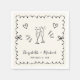 Retro-inspired light cream wedding napkins for your engagement party, rehearsal dinner, reception, etc., featuring a trendy wavy frame adorned with coquette bows, whimsical hand drawn illustrations of hearts and toasting champagne glasses, and the names of the bride and groom in a fun, playful handwritten script.