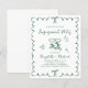 Set the tone for a joyful celebration with this charming retro-inspired engagement party invitation featuring a green wavy frame, hand-drawn bows, and playful green script lettering. The toasting wine glasses add a fun, festive touch, creating the perfect blend of romantic and whimsical style. NOTE: This budget-friendly paper is similar in weight to photo paper -- a larger and thicker 5x7 traditional card stock version is also available (message us for the link).