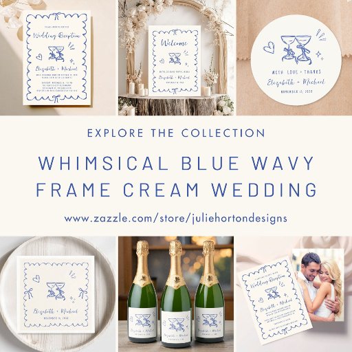 Whimsical Blue Wavy Frame Cream Wedding ReceptionDesigned by Julie Horton