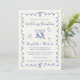 Romantic light cream wedding reception save the date featuring a french blue wavy frame adorned with coquette bows, whimsical hand drawn illustrations of a heart, stars and wine glasses, and "Wedding Reception" and the names of the bride and groom in a fun, playful blue script. Add your photo on the back.