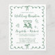 Celebrate your special day in charming style with this wedding reception invitation featuring playful green hand-drawn illustrations and fun green script and lettering. Toasting wine glasses, a heart and bows add a festive touch, making it perfect for couples hosting a joyful reception celebration. The scalloped green wavy border frame creates a unique, eye-catching design that feels both classic and fresh. Personalize with the names of the bride and groom, reception date, venue details, and RSVP information. Whether you’re planning a formal event or an intimate casual gathering, this design complements a wide range of wedding themes—from modern minimalist to classic romance. NOTE: This budget-friendly paper is similar in weight to photo paper -- a larger and thicker 5x7 traditional card stock version is also available (message us for the link).