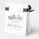 Whimsical wedding favour boxes with little bow. Cute illustration with two butterflies in love. Whimsical offbeat design with elegant script typography. Black and white or colour options.